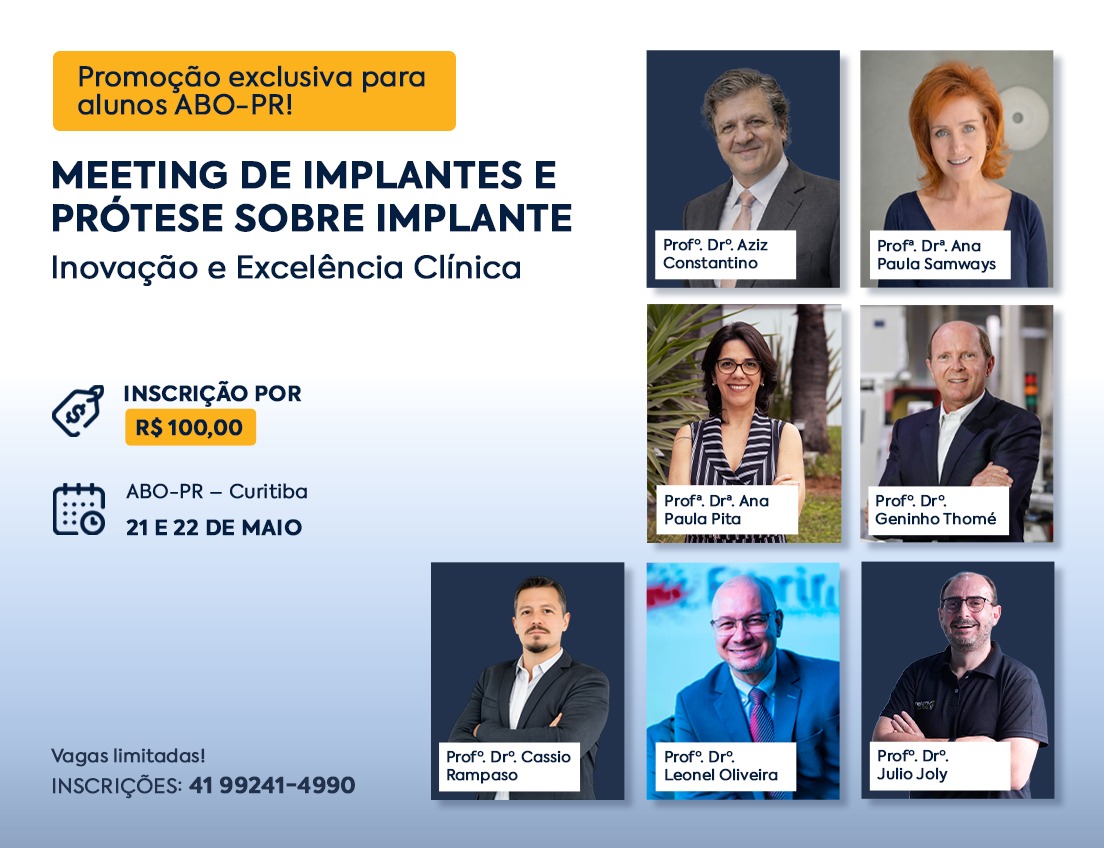 23 mar 2026 ABO-PR abre inscrições para Meeting de Implantes e Prótese sobre Implante que acontece em maio, em Curitiba
