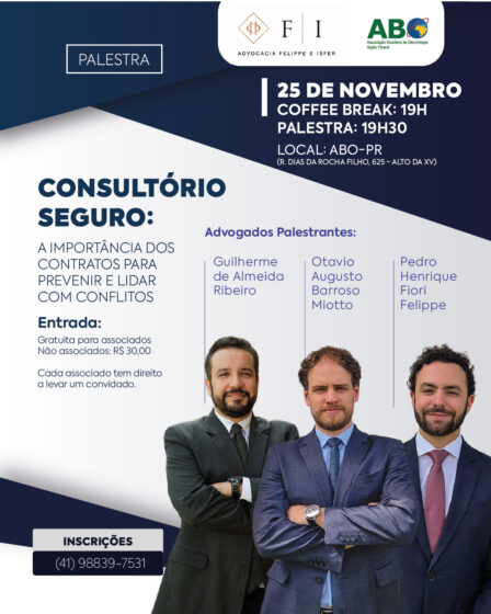 O consultório odontológico precisa estar preparado não apenas do ponto de vista clínico, mas também do jurídico. Pensando nisso, a ABO-PR promove a palestra “Consultório Seguro: a importância dos contratos para prevenir e lidar com conflitos”, um encontro essencial para quem deseja proteger sua atuação profissional, evitar riscos e conduzir situações de conflito com segurança.