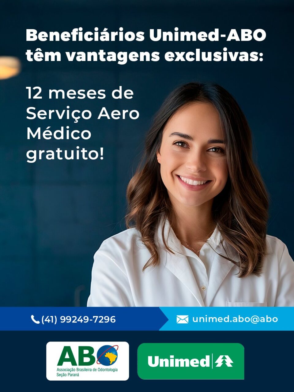 A ABO-PR, sempre em busca de oferecer benefícios exclusivos e mais segurança aos seus associados, informa que, em parceria com a Unimed, o Serviço Aero Médico estará isento de cobrança por 12 meses, a partir de janeiro de 2026.