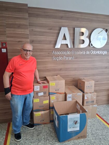 O diretor de Ação Social da ABO-PR, Dr. Luiz Antônio de Almeida, já está com as doações prontas para envio.