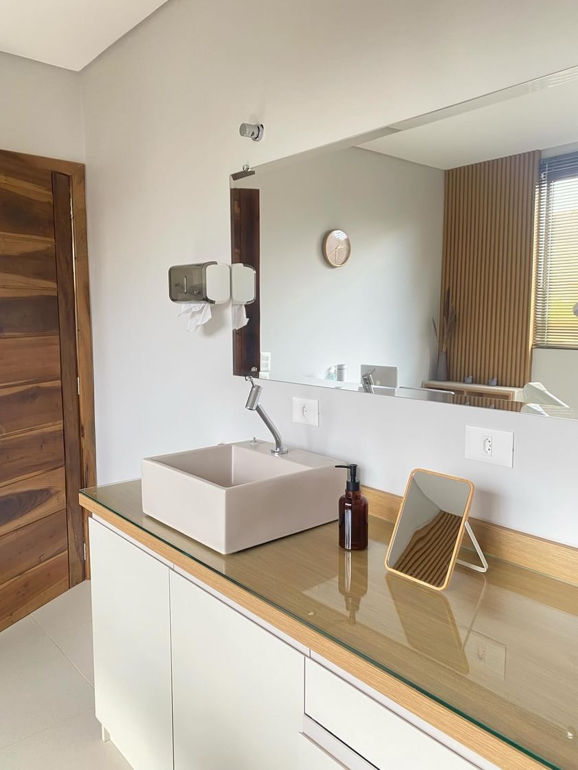- Móveis em MDF (bancada, carrinho com 4 gavetas, painel ripado, mesa)