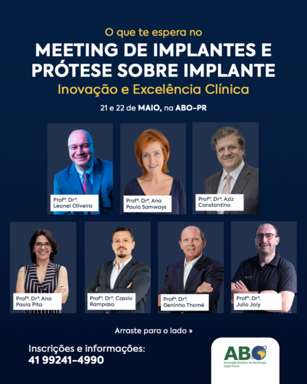As inscrições já estão abertas para o Meeting de Implantes e Prótese sobre Implante: Inovação e Excelência Clínica, promovido pela ABO-PR.
